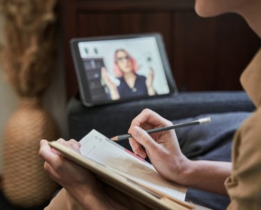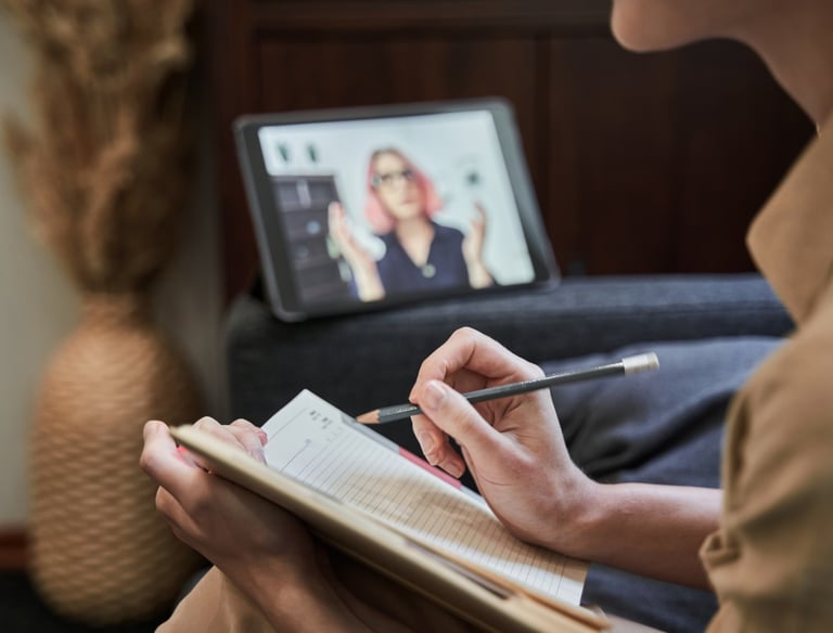Sessões de terapia via videochamada, com flexibilidade e conforto para você.